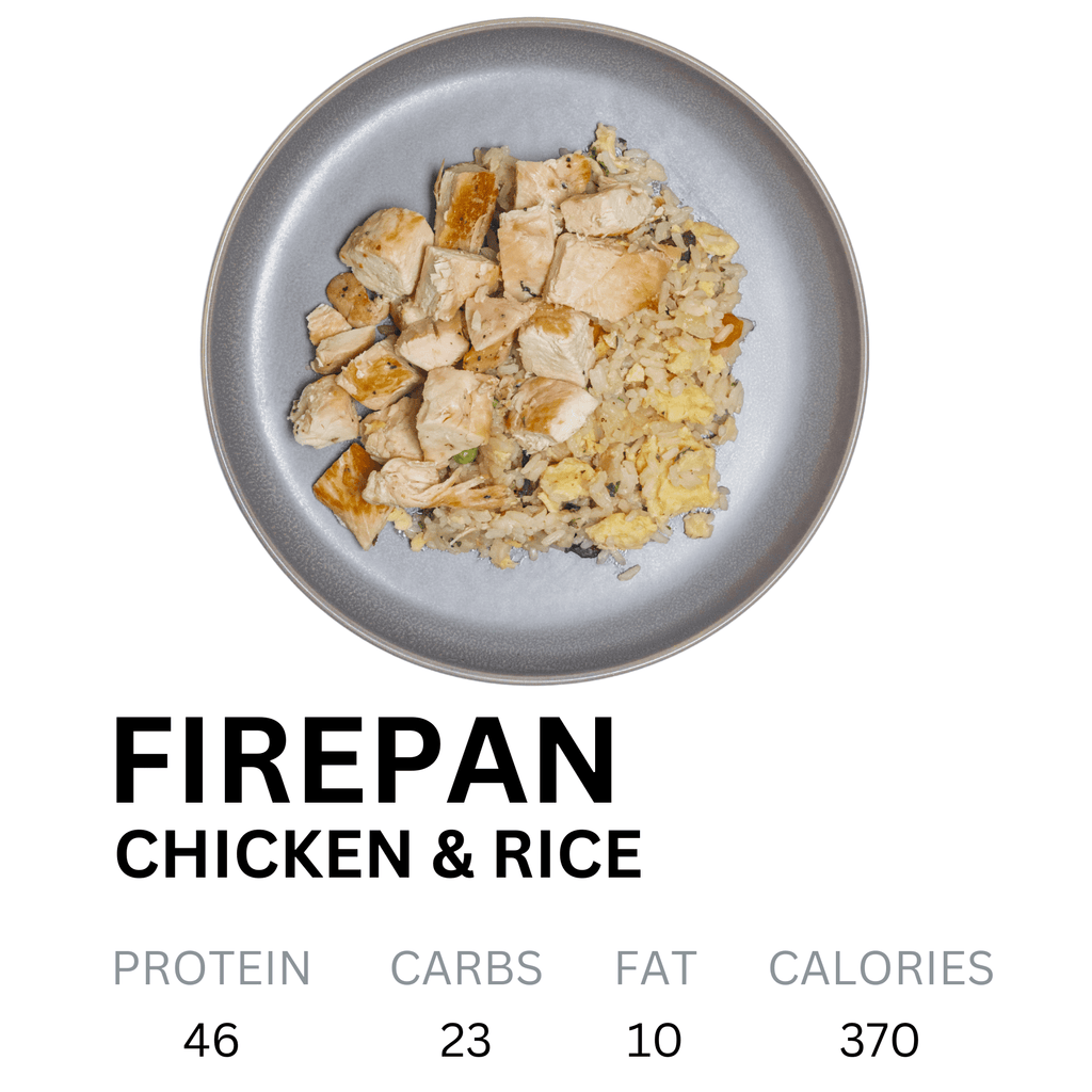 Bold flavor, wok-fired satisfaction. The Firepan Chicken & Rice brings together tender, seasoned chicken, fluffy white rice, and a vibrant medley of crisp vegetables—all tossed in a sizzling, savory sauce that delivers takeout-style flavor without the guilt. It’s a high-protein, no-compromise meal built for convenience, craveability, and clean fuel. Stir-fry energy. Anytime simplicity.